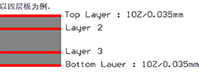 默認PCB外層銅箔線路厚度為1oz,最多可做6oz(需下單備注說明)如右圖 | ![]() |